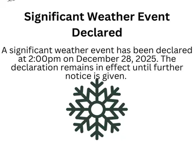 The Township of Southgate Administrative Office will be CLOSED from noon on December 24, 2025 until January 5, 2026 at 8:30AM.