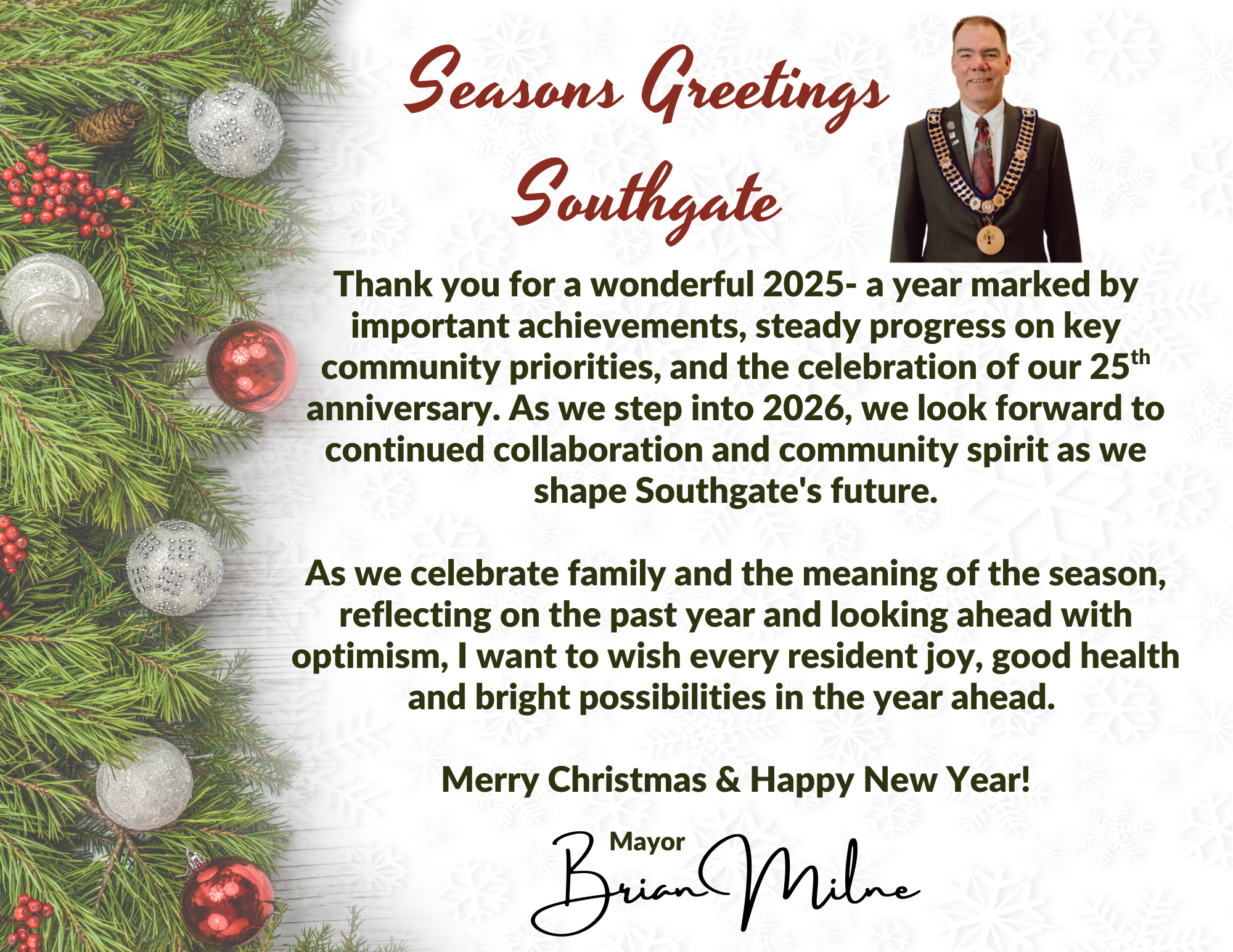 Mayor Milne's Holiday Message
